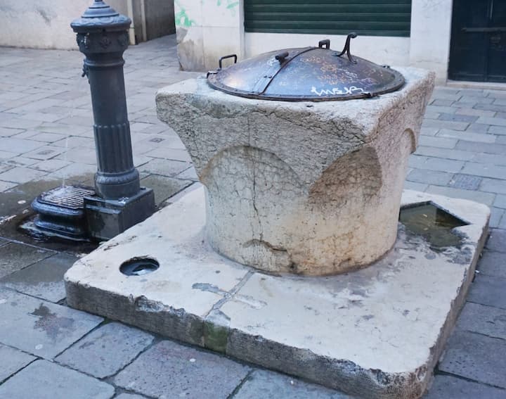 Conseguir agua potable siempre ha sido una de las necesidades básicas del ser humano. Para conseguirlo los venecianos siempre tuvieron algún problema que otro y es que, en una ciudad rodeada de una laguna salada beber siempre ha sido un problema. Como solución a esto, los ciudadanos de la ciudad de los canales instalaron estas estructuras de piedra. Conocidos en veneciano como pozzo, en español su traducción sería más bien la de aljibe.